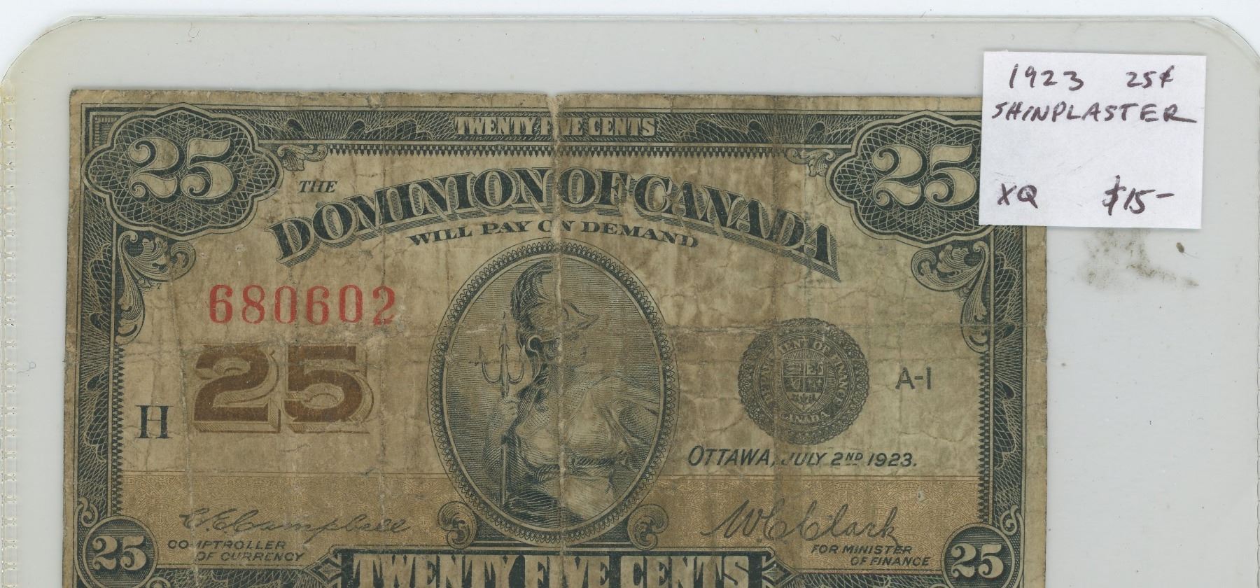 1923 25 CENTS SHINPLASTER. CAMPBELL-CLARK SIGNATURES.