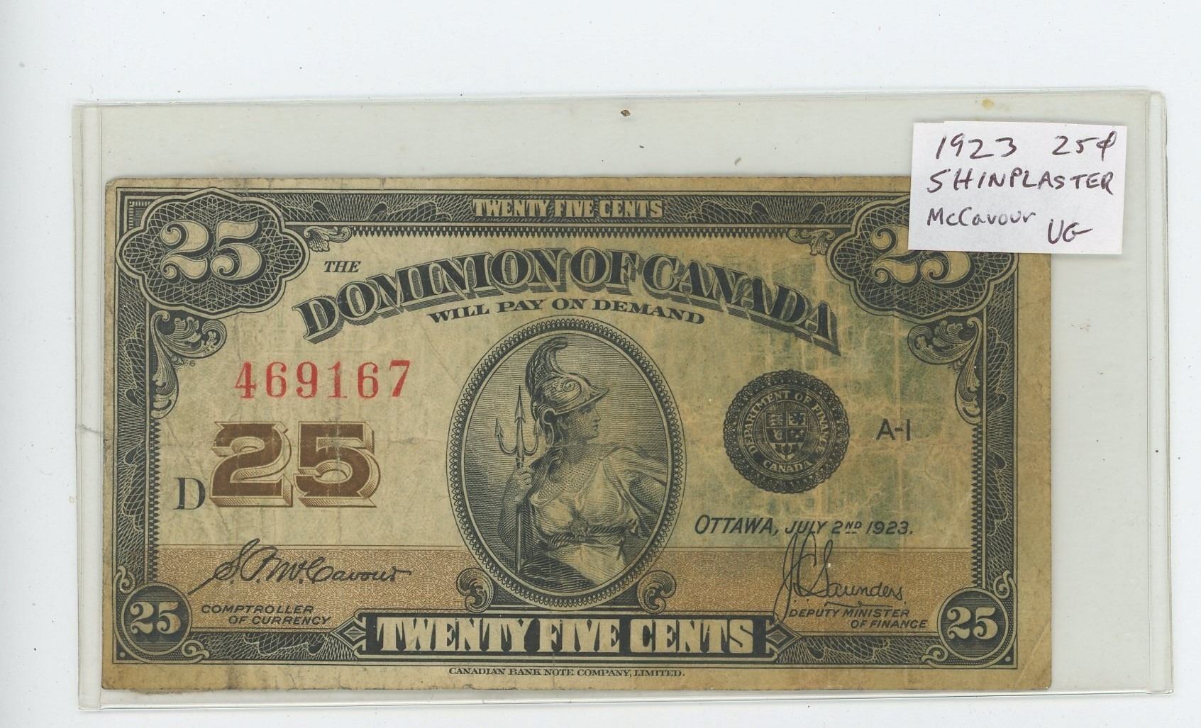 1923 25 CENTS SHINPLASTER. MCCAVOUR-SAUNDERS SIGNATURES. DC-24C. VG-8.
