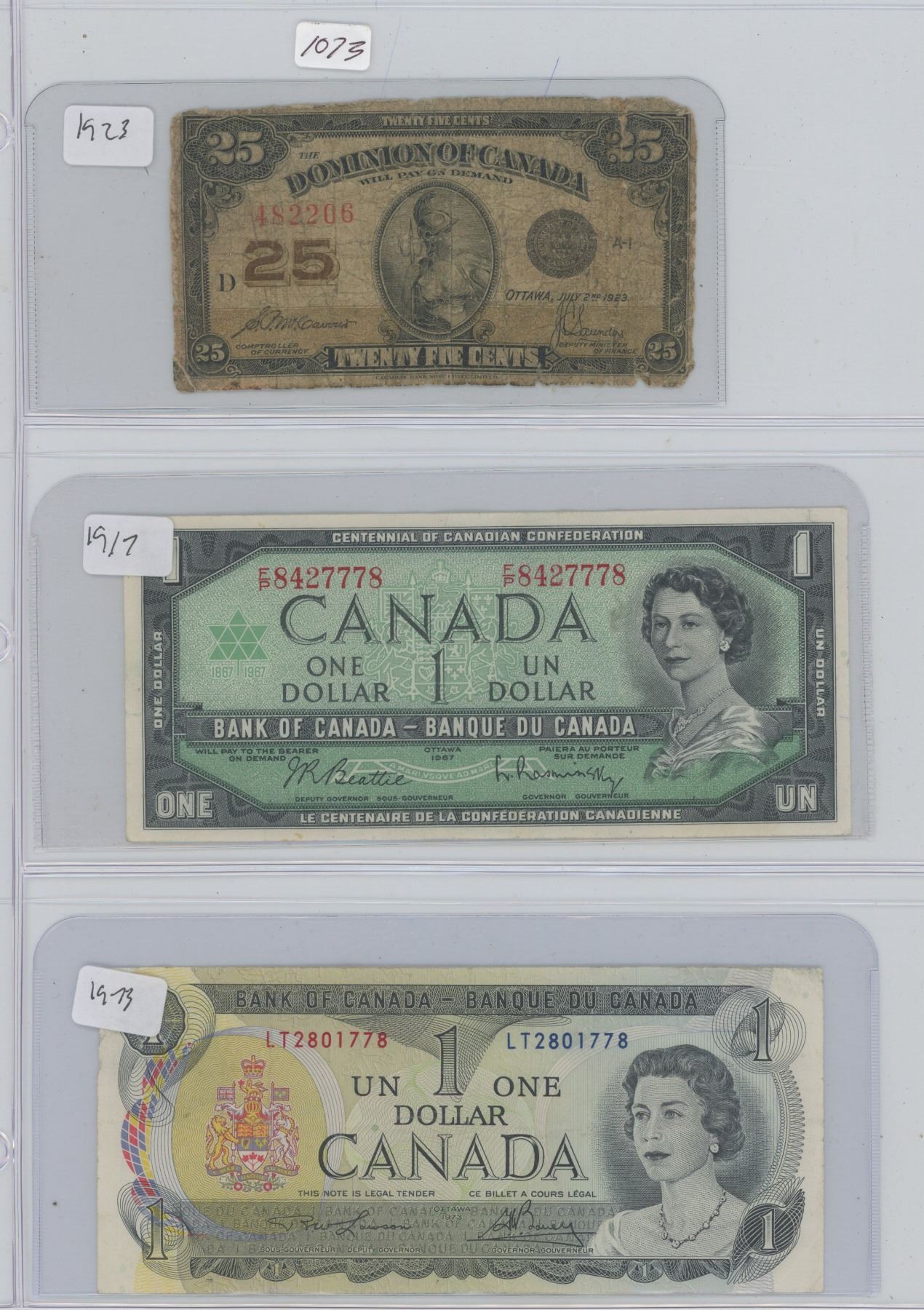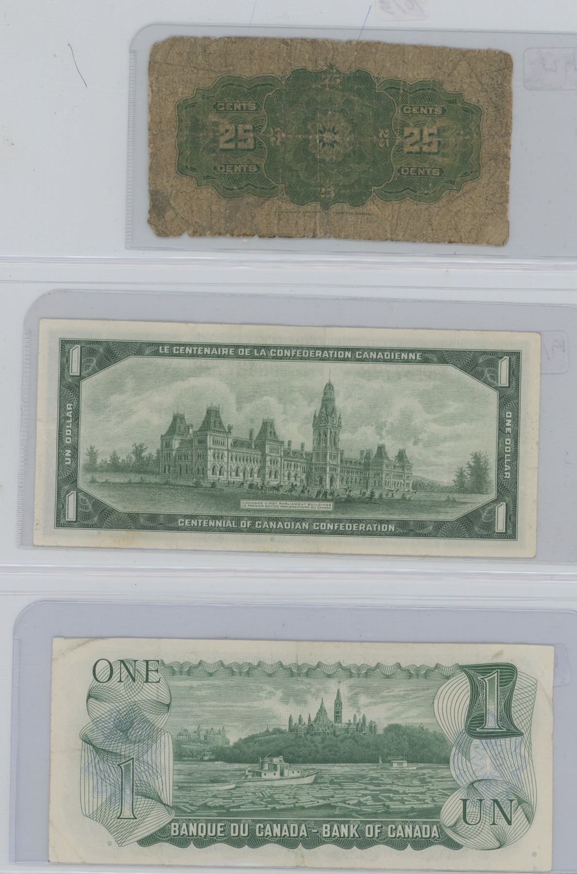 1923 25 Cent & 1917 One Dollar & 1973 One Dollar Canadian Bills