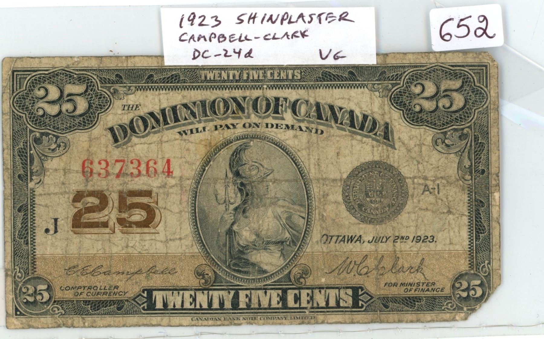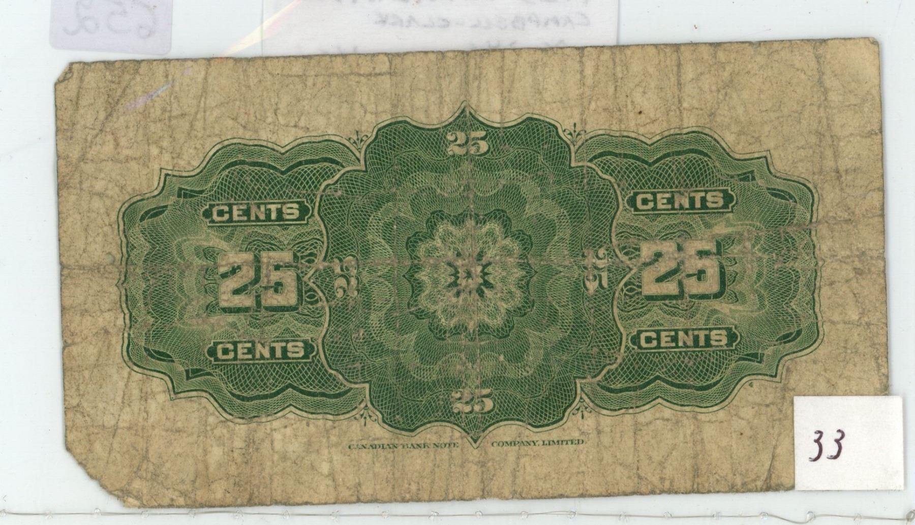 1923 25 Cents Shinplaster. Campbell-Clark signatures. BC-24d. The last 1923 Series. VG-8.