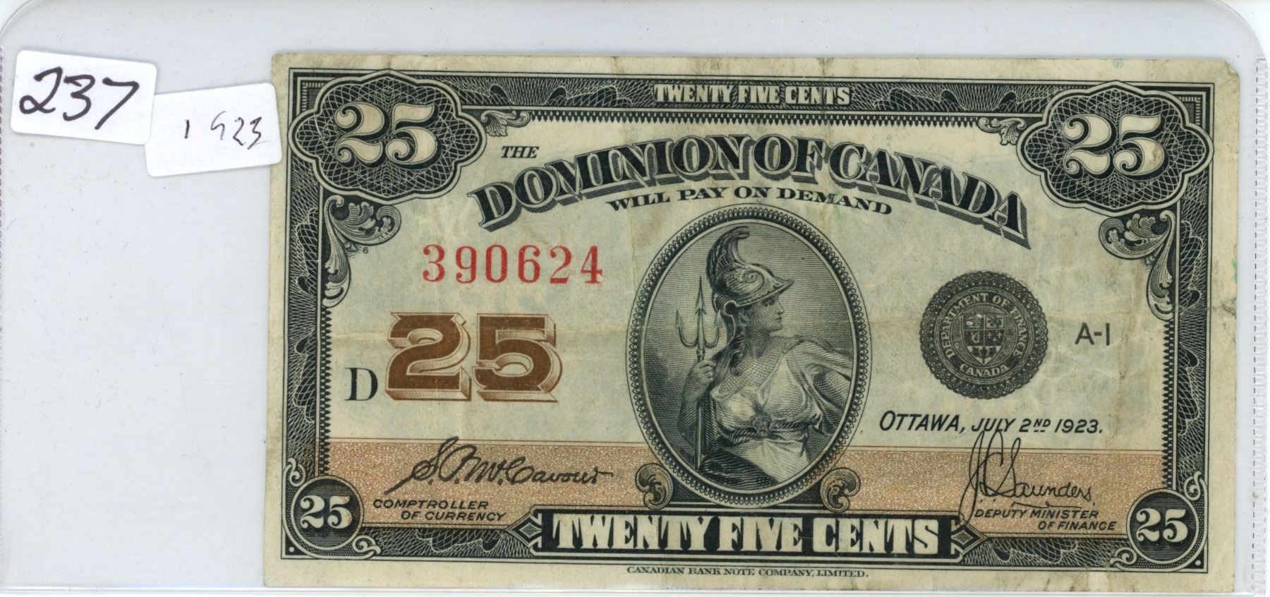 1923 25¢ Shin Plaster Dominion of Canada