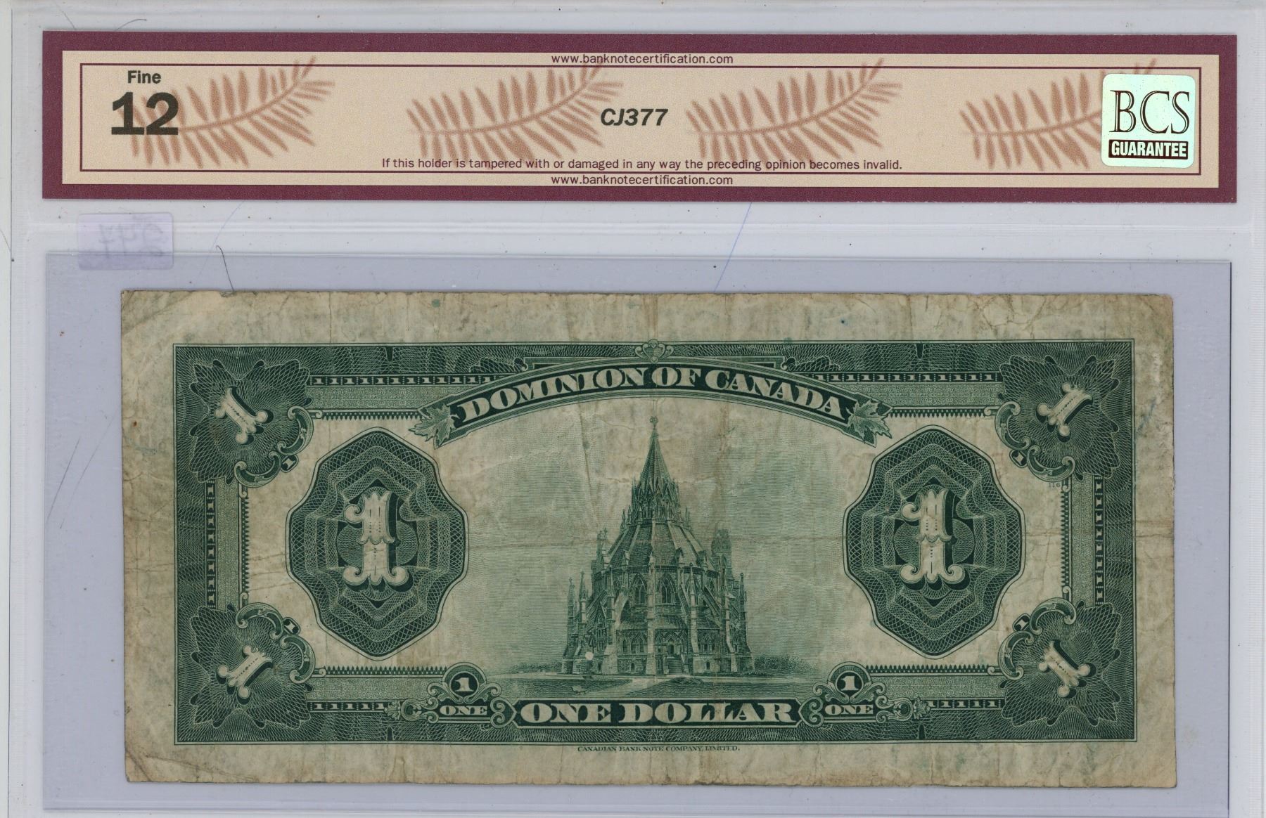 1923 BCS graded, Dominion of Canada 1 dollar bill - Campbell/Sellar - D4448053 - F12