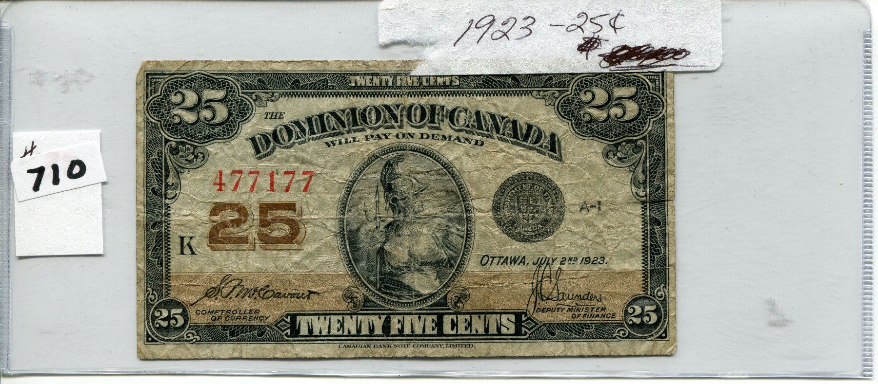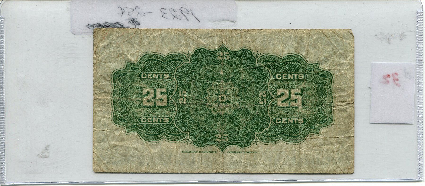 1923 CNDN 25 CENT SHINPLASTER NOTE