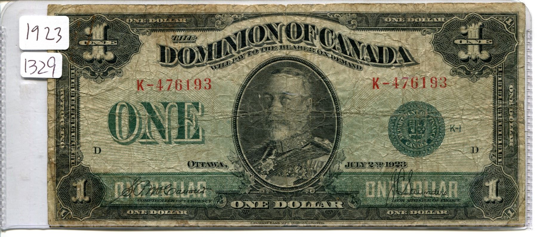 1923 Canadian $1.00 One dollar