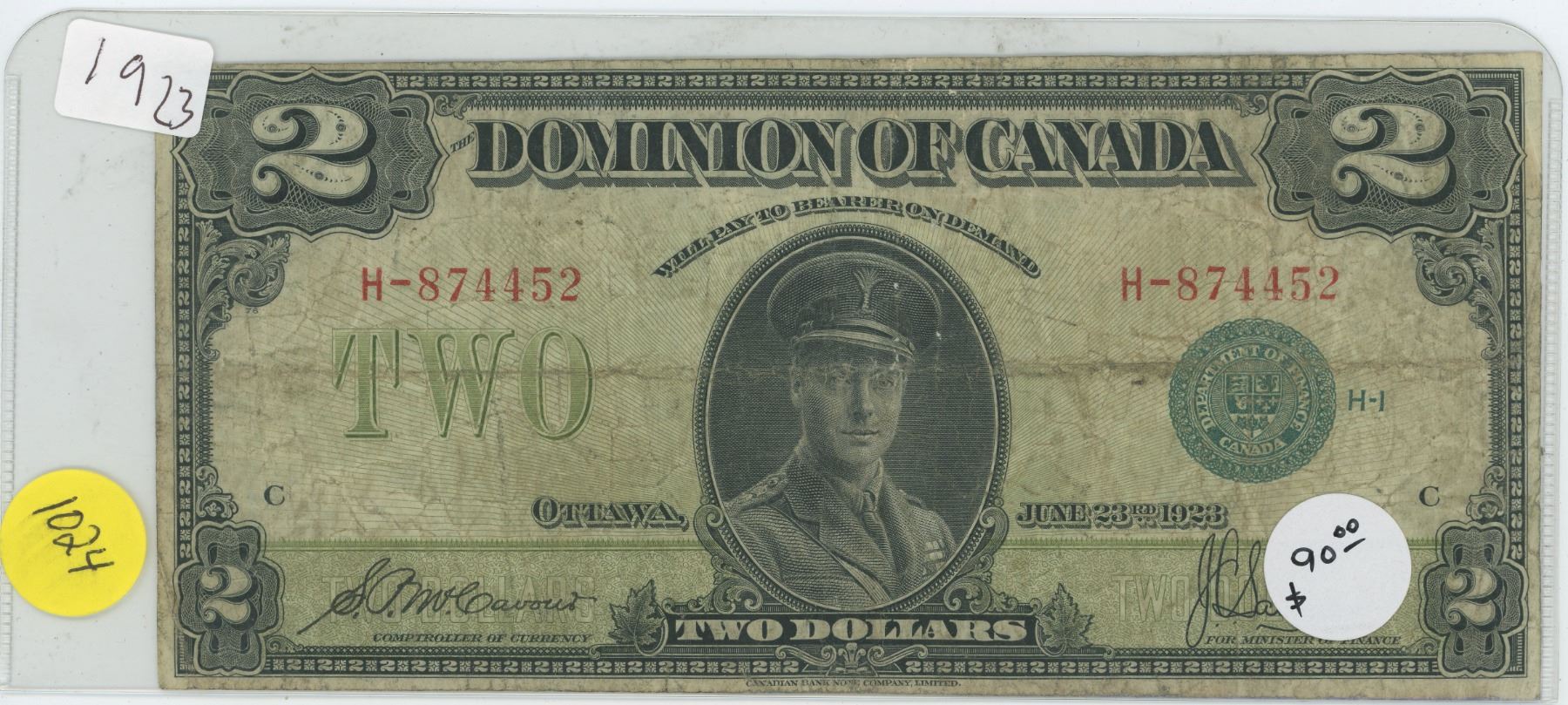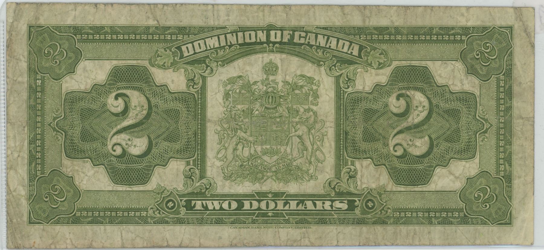 1923 Canadian 2 Dollar Bill