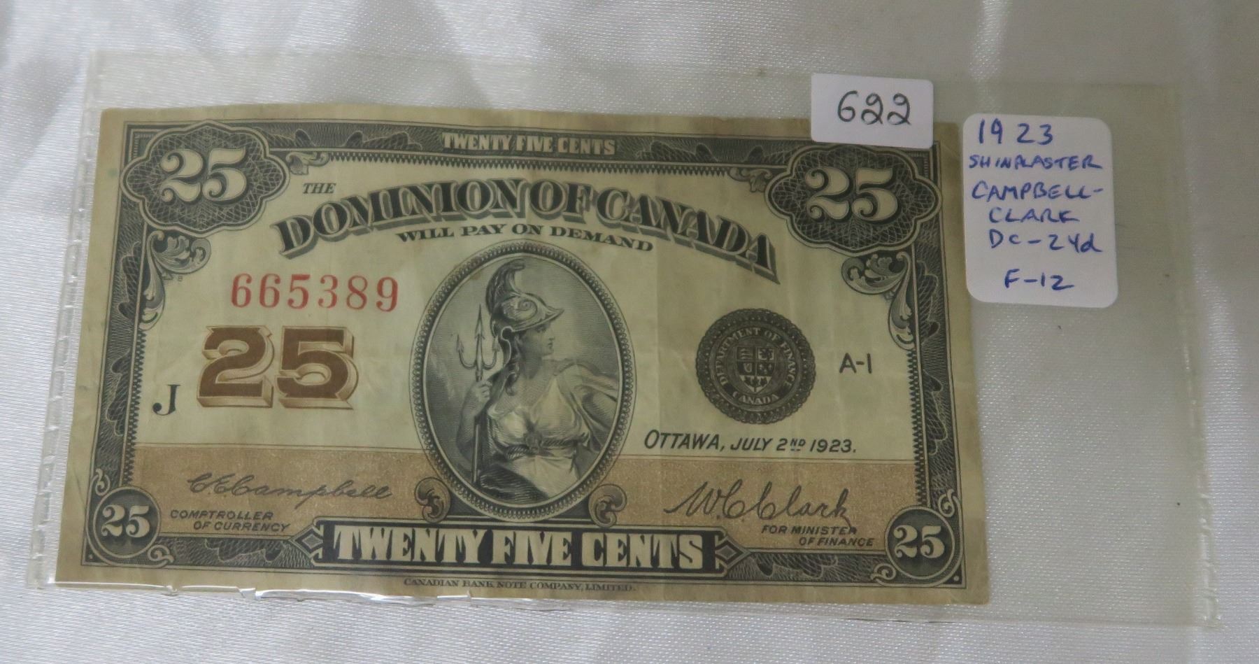 1923 Canadian 25 Cents Shinplaster. Campbell-Clark signatures. DC-24d. The last shinplaster issued. F-12.