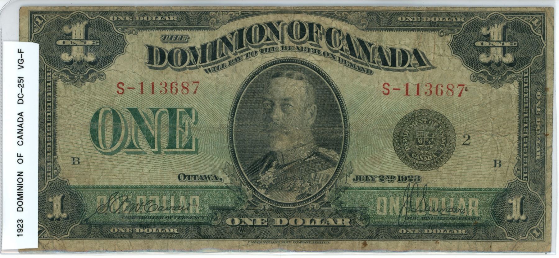 1923 DC-25f one dollar McCavour- Saunders Black seal, group 2, Series S to V, S-113687, VG-F