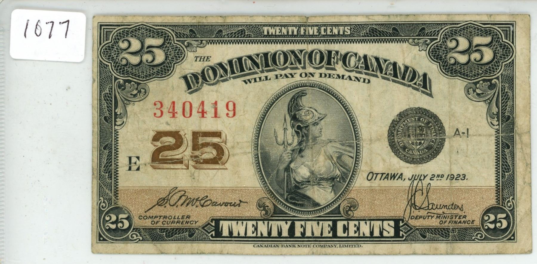 1923 Dom. Of Canada 25¢ Bill - Shinplaster
