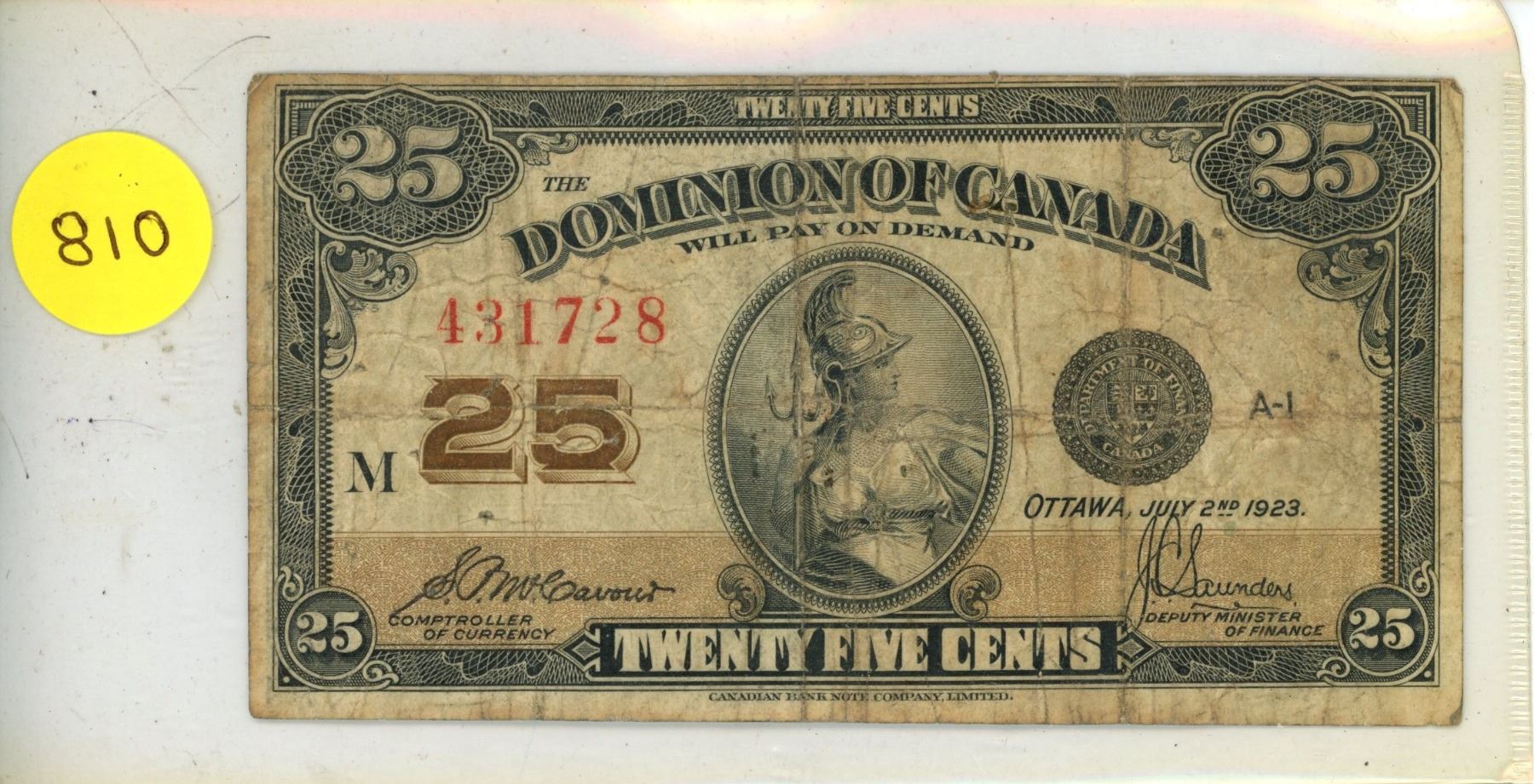 1923 Dominion of Canada 25 Cents Shinplaster.