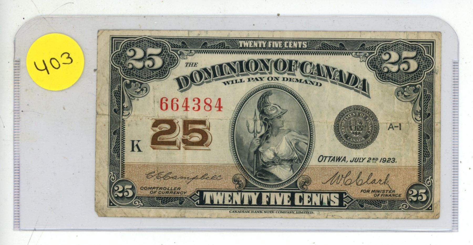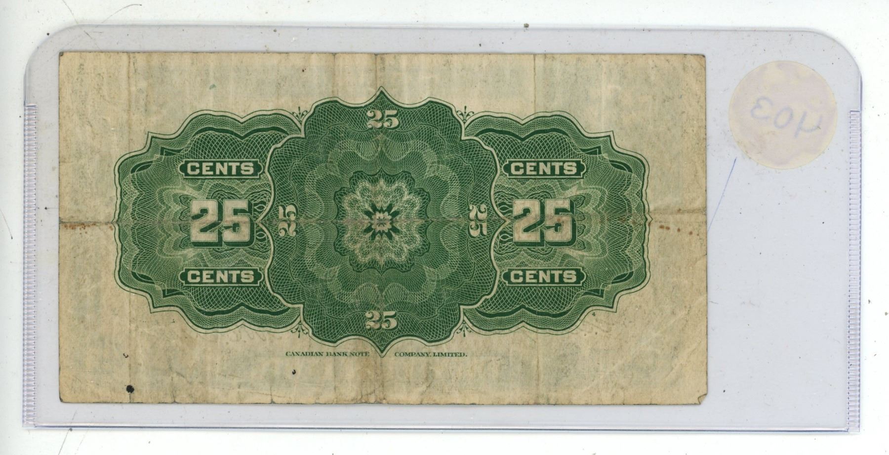 1923 Dominion of Canada 25 Cents Shinplaster.