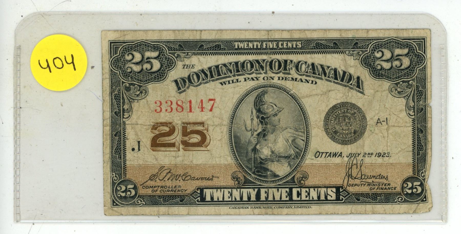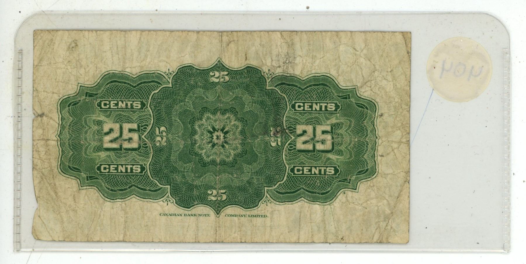 1923 Dominion of Canada 25 Cents Shinplaster.