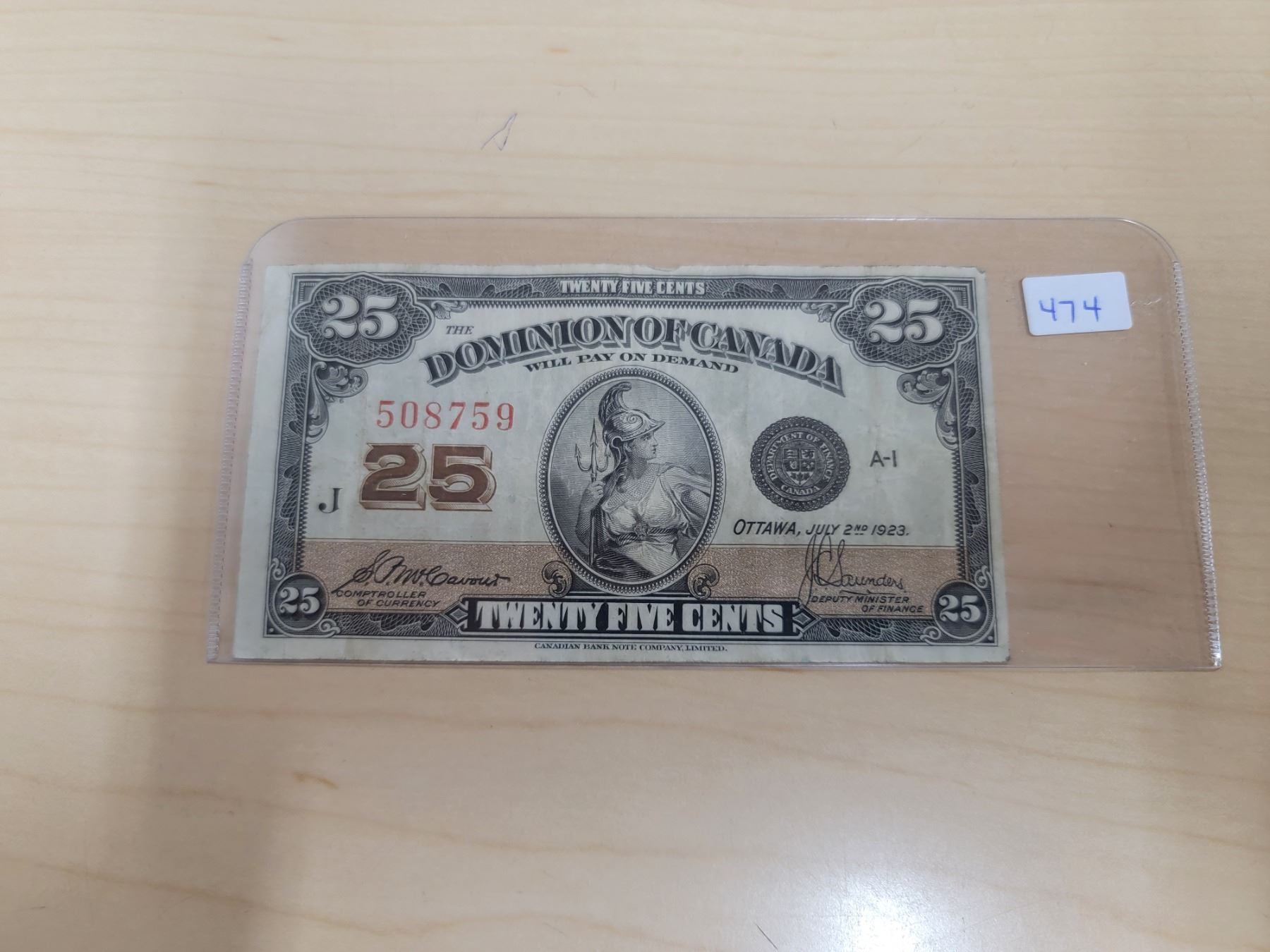1923 Dominion of Canada 25¢ Shinplaster, McCavour/Saunders (# 508759)