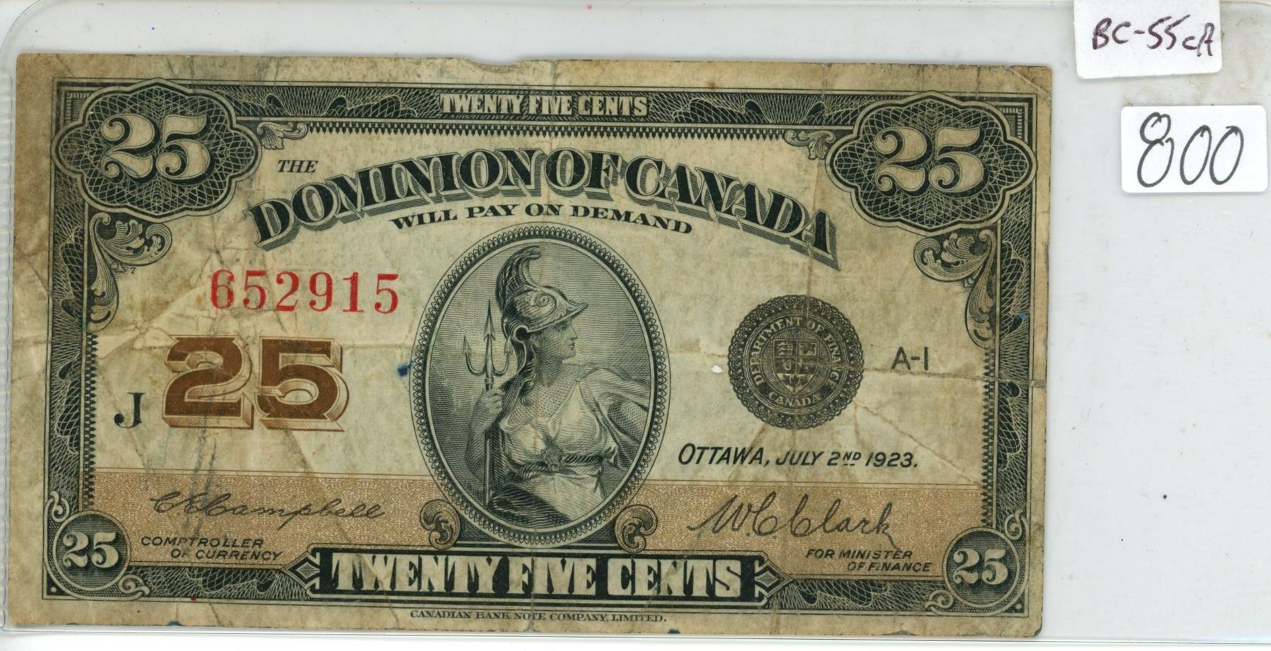 1923 Dominion of Canada 25¢ shinplaster - Campbell / Clark
