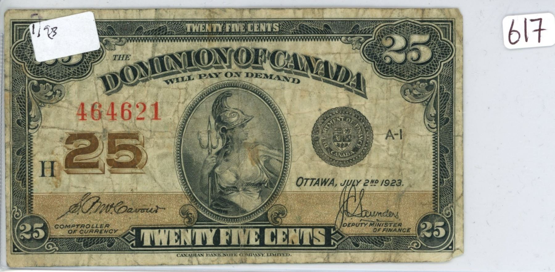 1923 Dominion of Canada shinplaster 25¢
