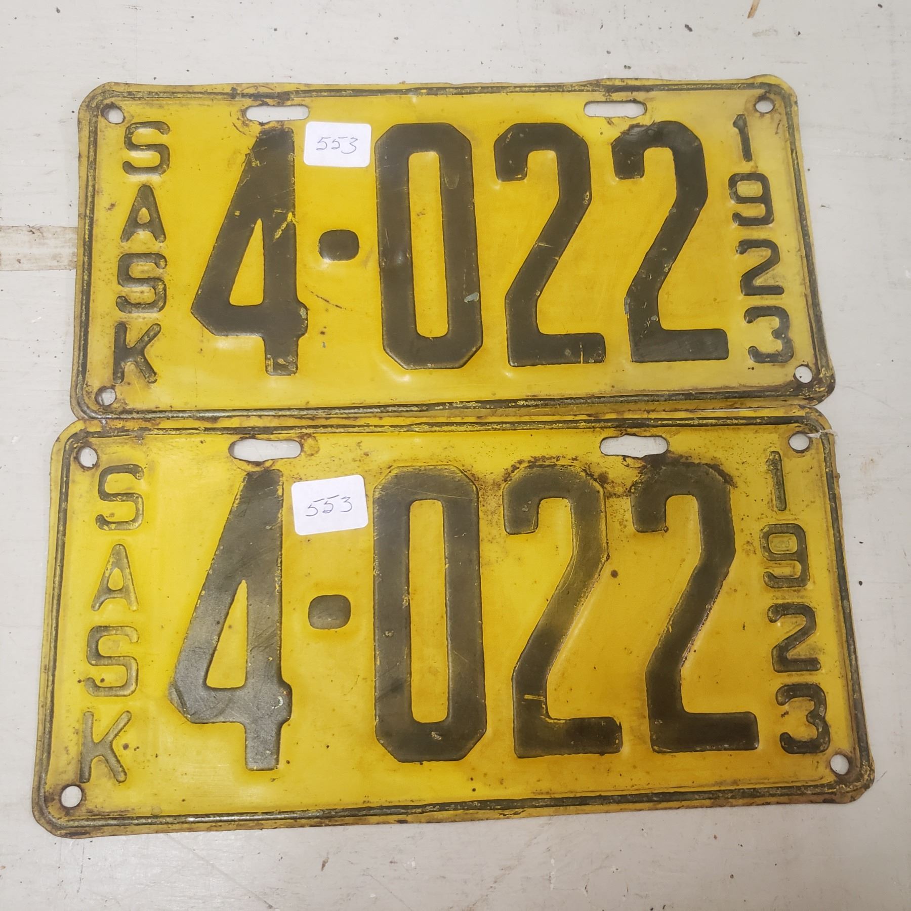 1923 Pair / set Saskatchewan Liscence Plate vintage original Sask plate
