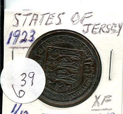 1923 STATES OF JERSEY 1/12 SHILLING XF COND.