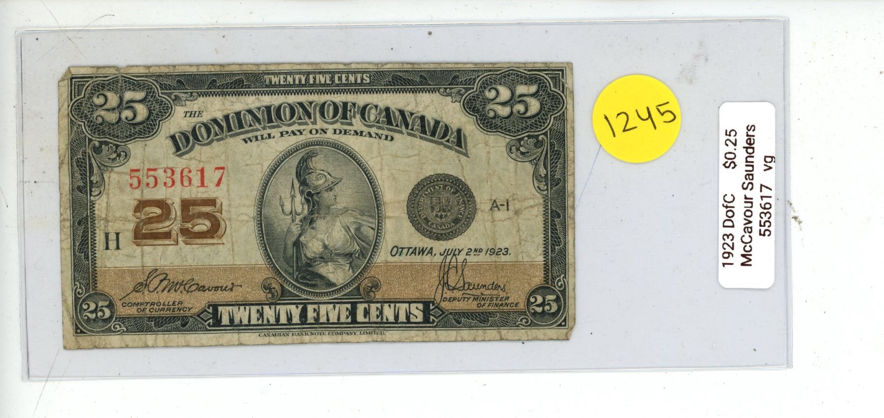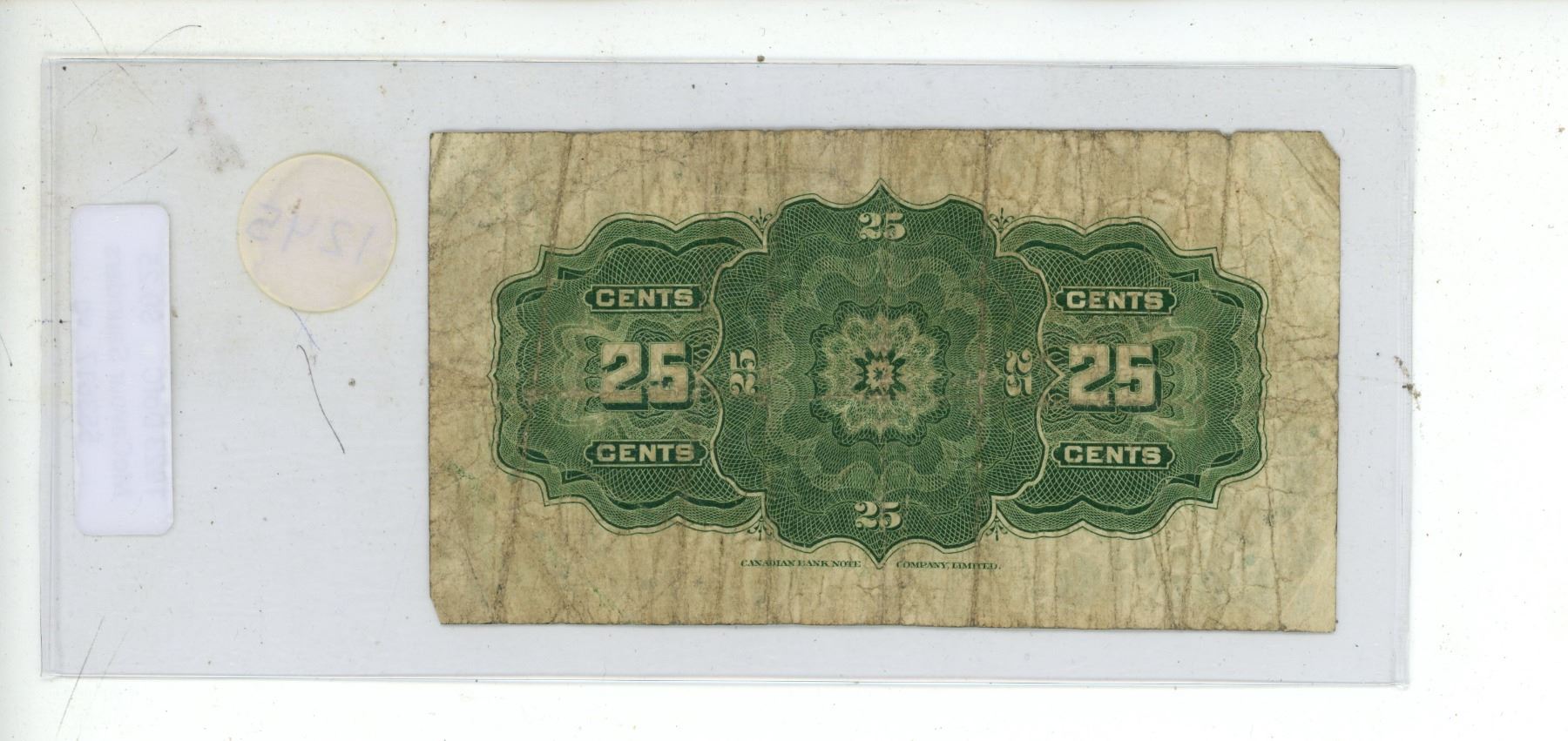 1923 VG Dominion Of Canada Twenty Five Cent Shinplaster Bank Note