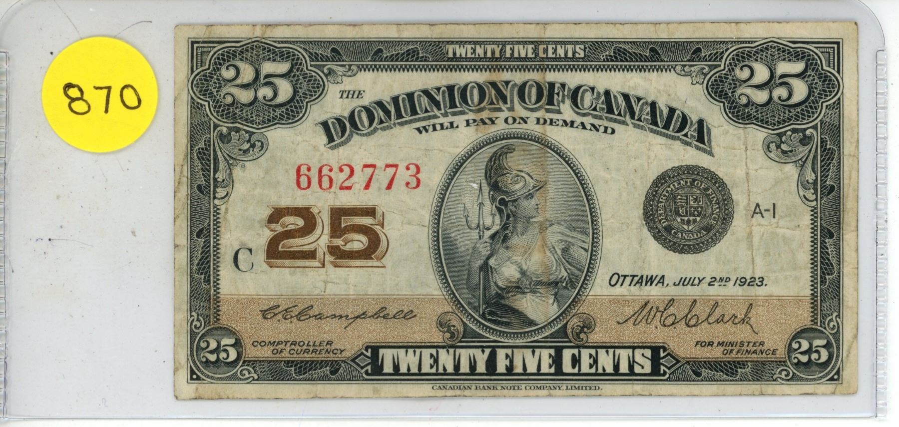 1923 dominion of Canada shinplaster