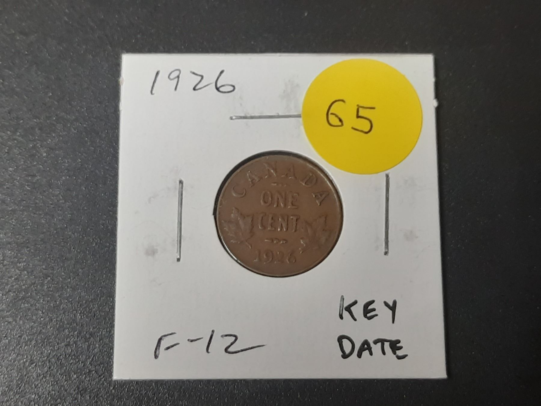 1926 Canadian Small Cent. Key Date. F12.