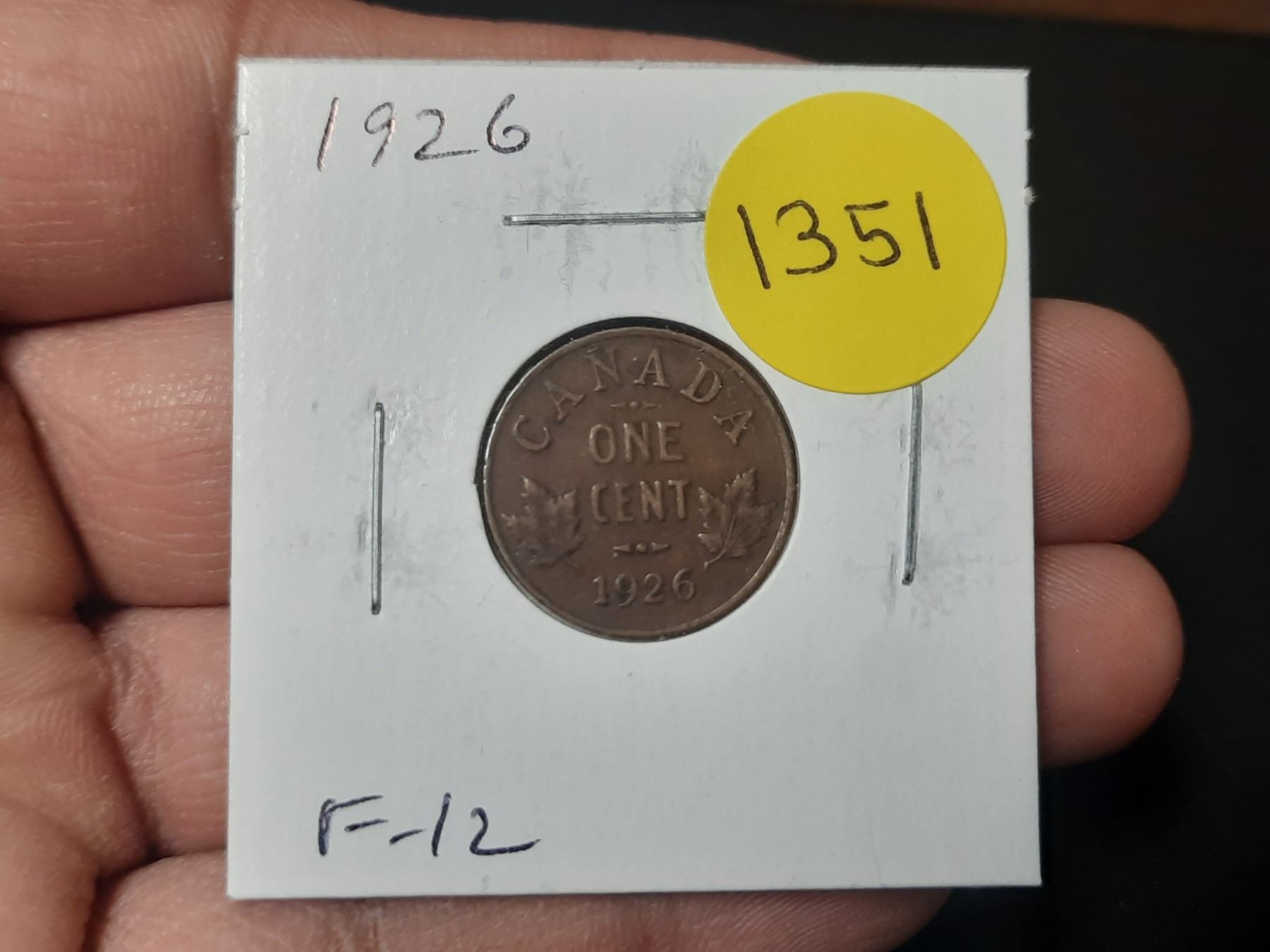 1926 Canadian Small Cent. Key Date. F12.