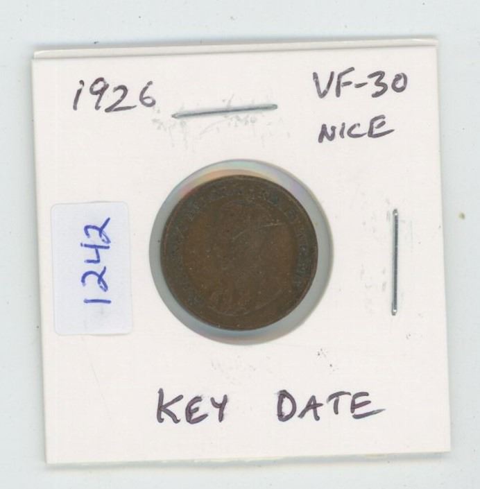 1926 George V Small Cent. VF-30. Key Date. Nice.