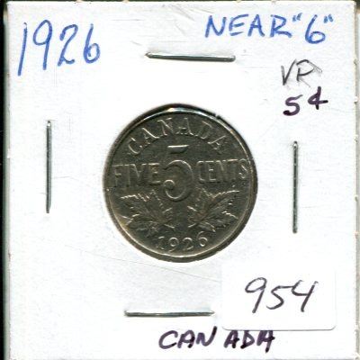 1926 Near '6' Canada 5¢