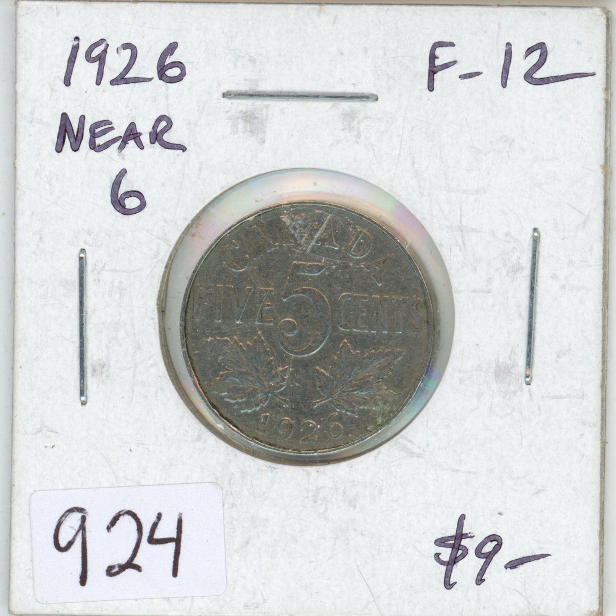 1926 Near 6 Nickel 5 Cents. F-12.