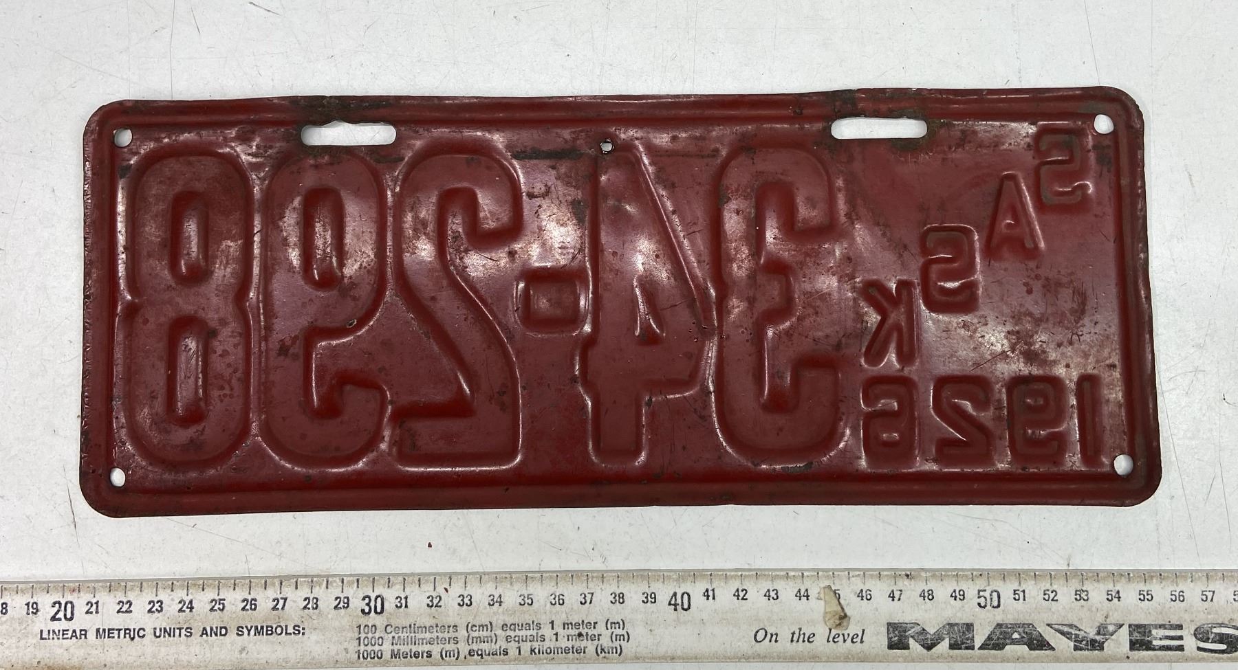 1926 Saskatchewan Canada Antique License Plate 34-298