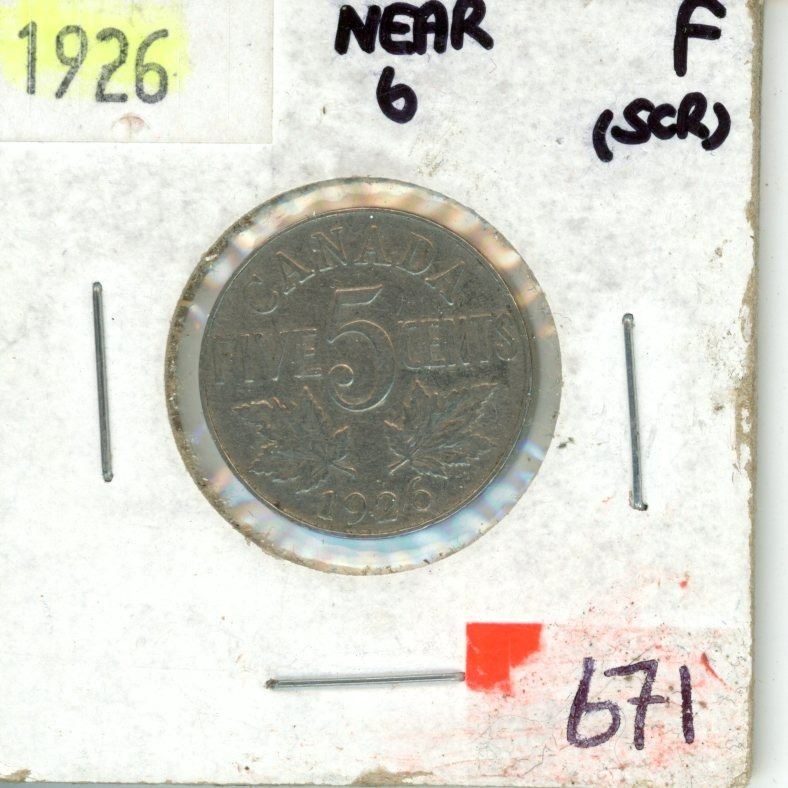 1926 'near six' Canada five cent nickel