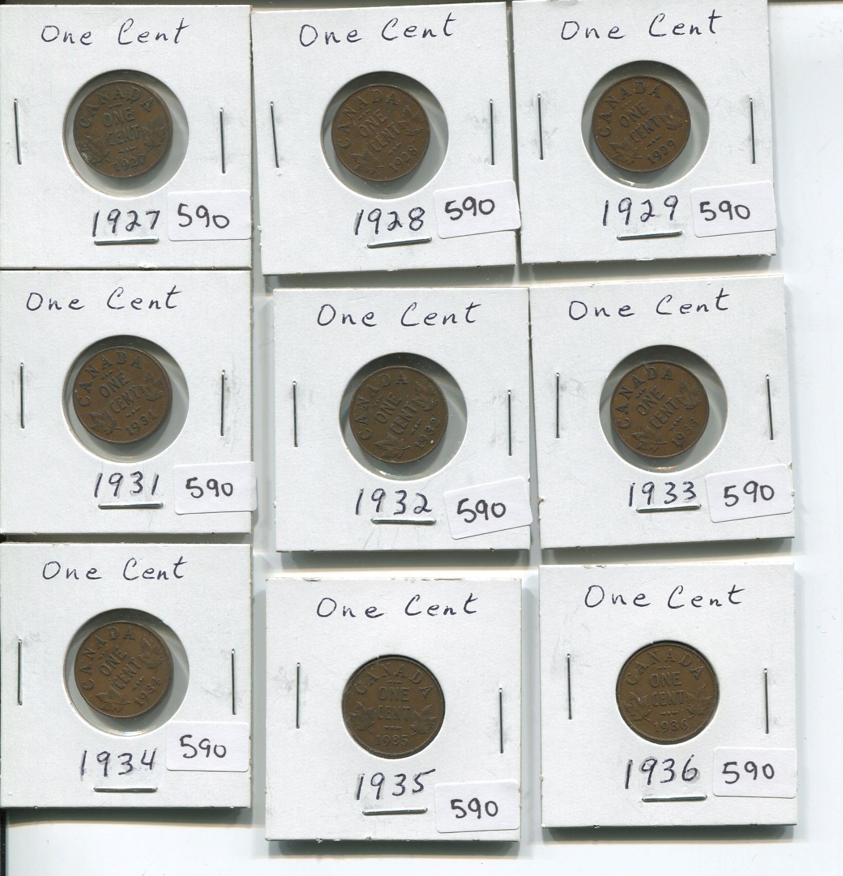 1927, 1928, 1929, 1931, 1932, 1933, 1934, 1935, 1936 CANADIAN ONE CENT