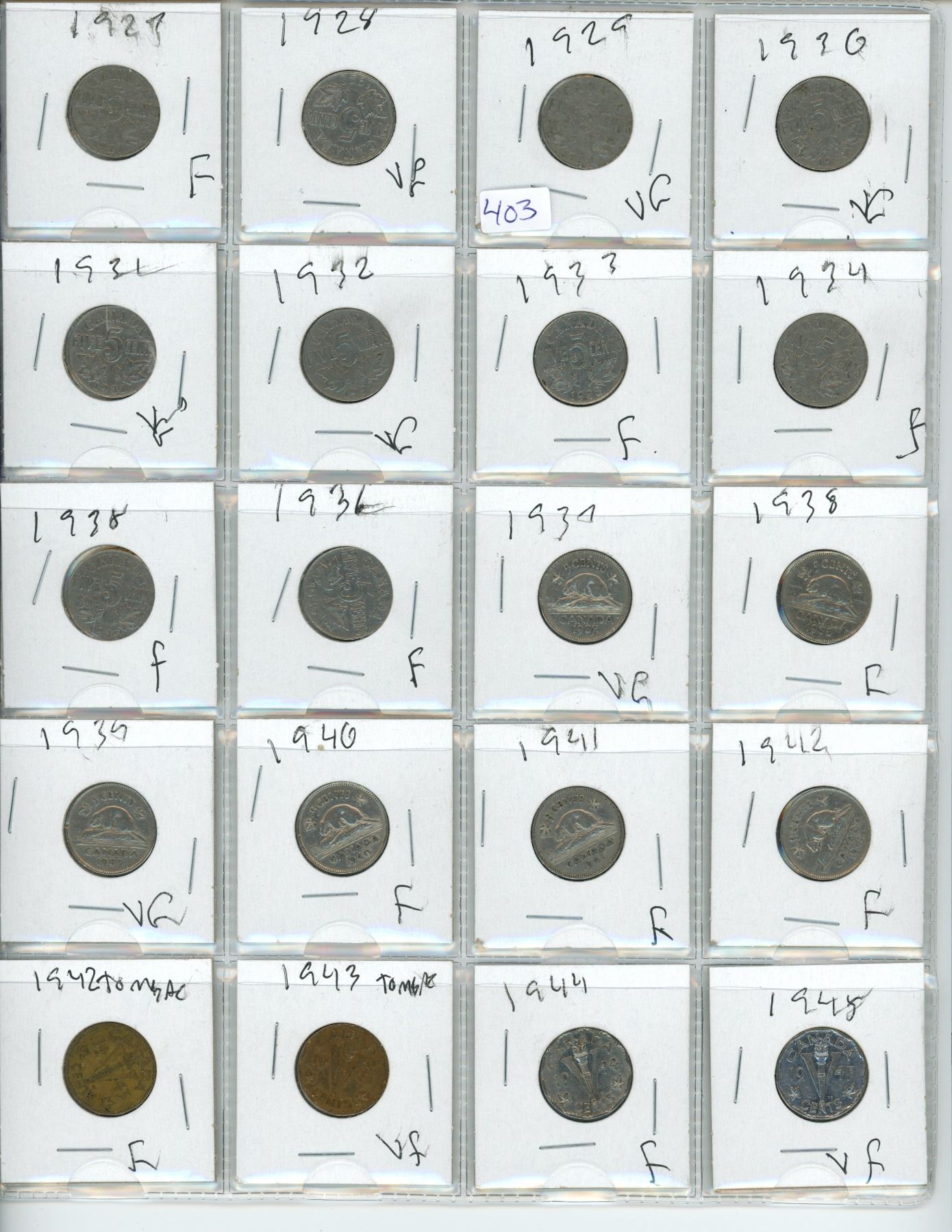 1927-1945 Canadian 5 Cent Coins X20 (42-48 Victory Coins)
