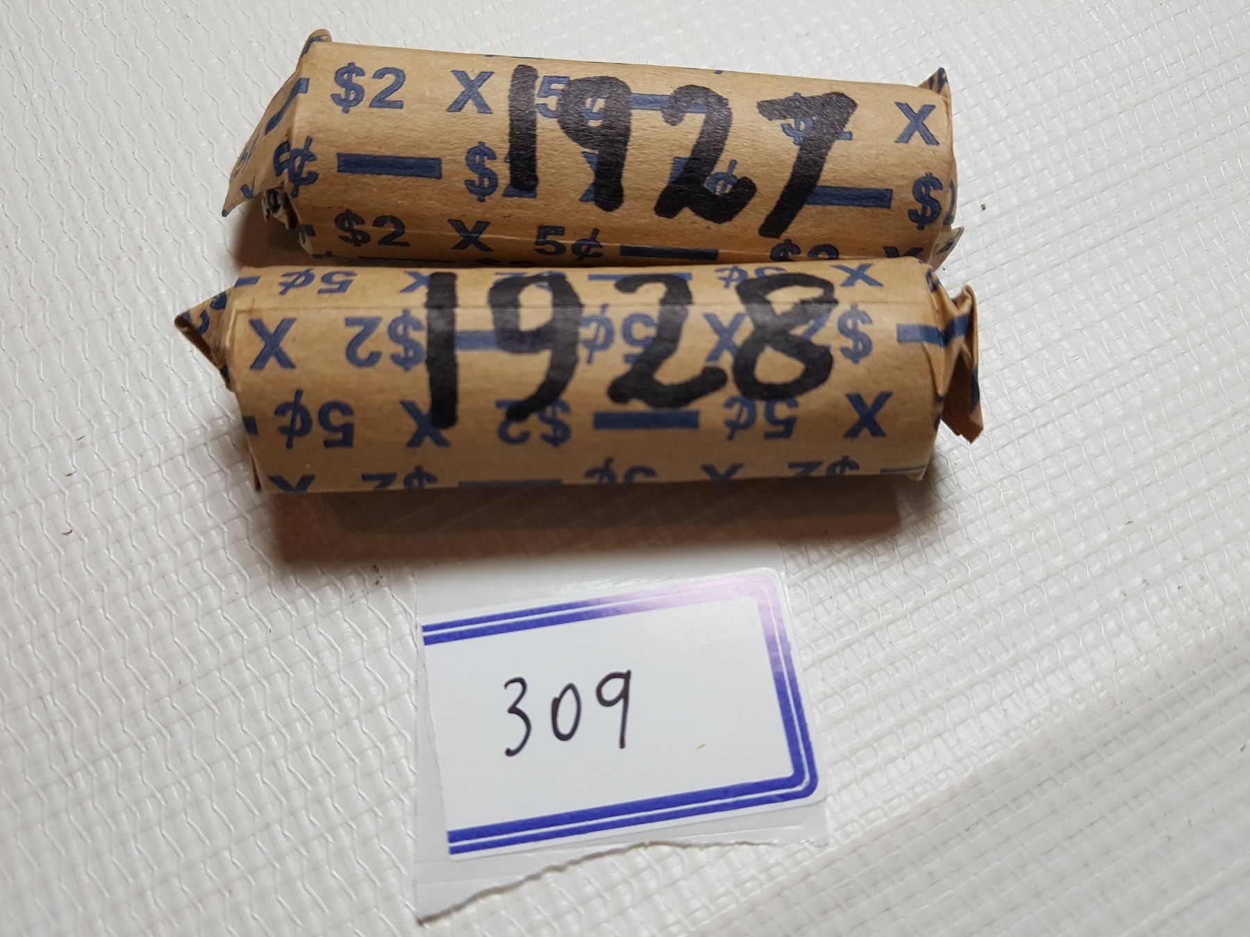 1927 AND 1928 FULL ROLLS OF 5 CENT CANADA COINS