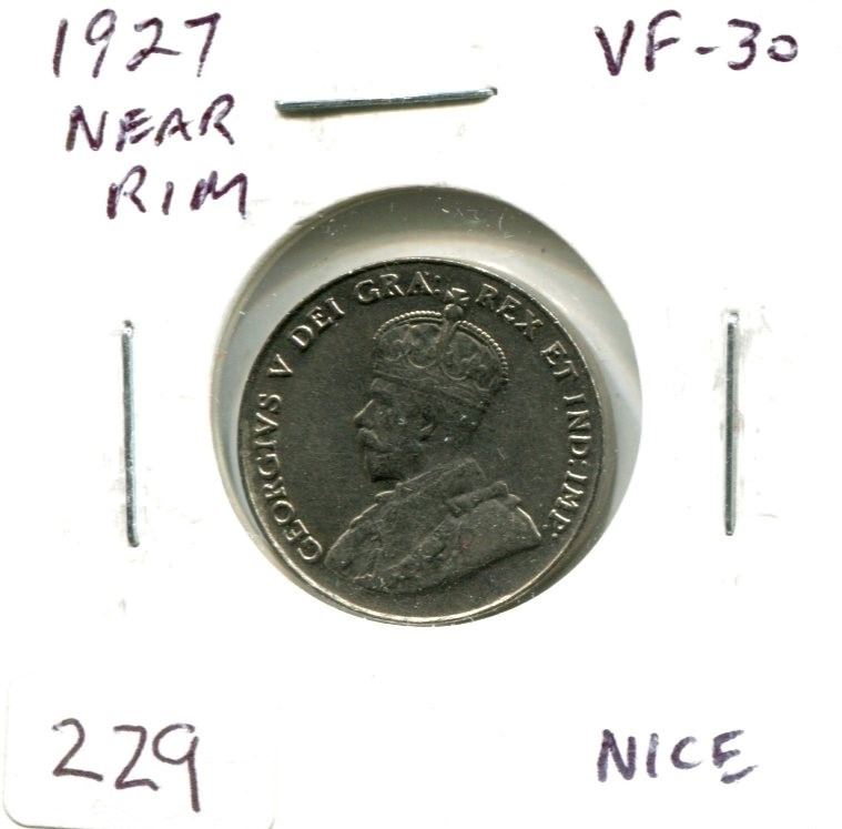 1927 Near Rim Nickel 5 Cents. S is Near Rim. VF-30. Nice.