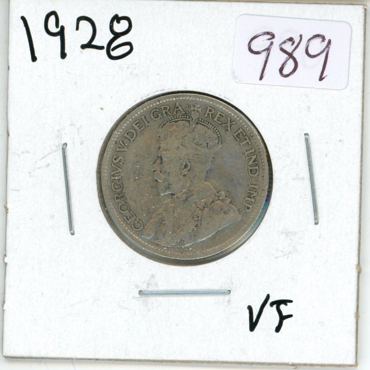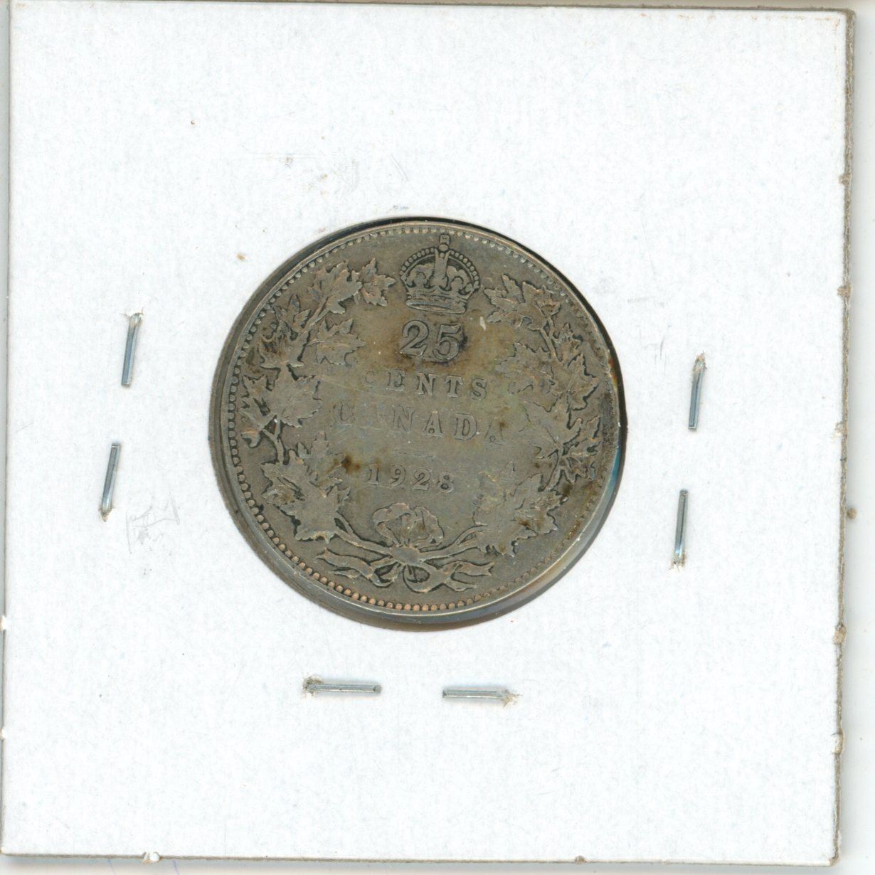 1928 Canadian silver 25 cent coin
