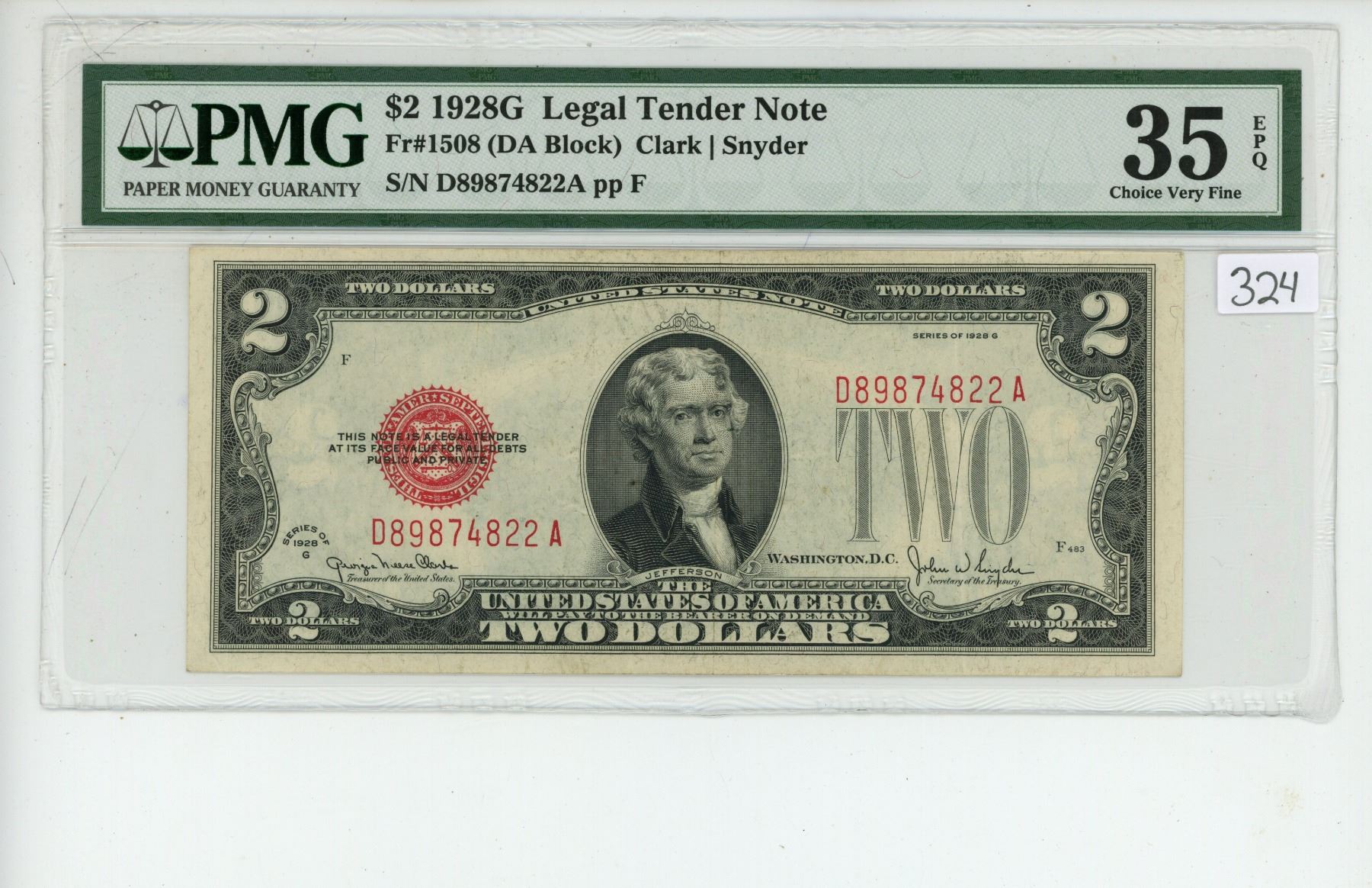 1928G PMG graded, US 2 dollar bill - Clark/Snyder - D89874822A - VF35