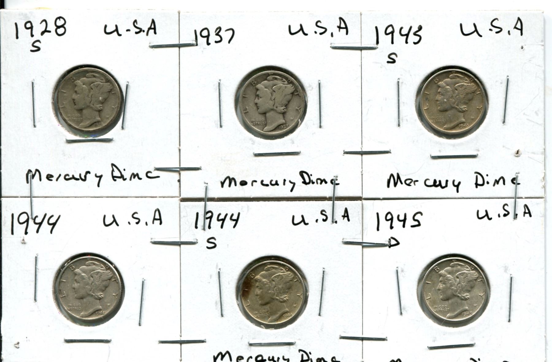 1928S, 1937, 1953S, 1944, 1944S, 1945D USA Mercury Dime