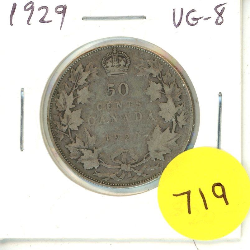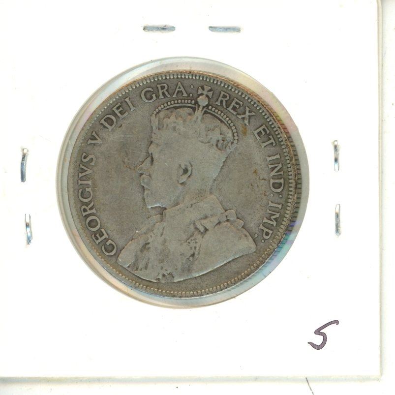 1929 Canadian Silver 50 Cents Coin.