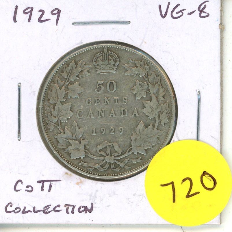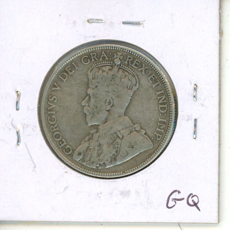 1929 Canadian Silver 50 Cents Coin.