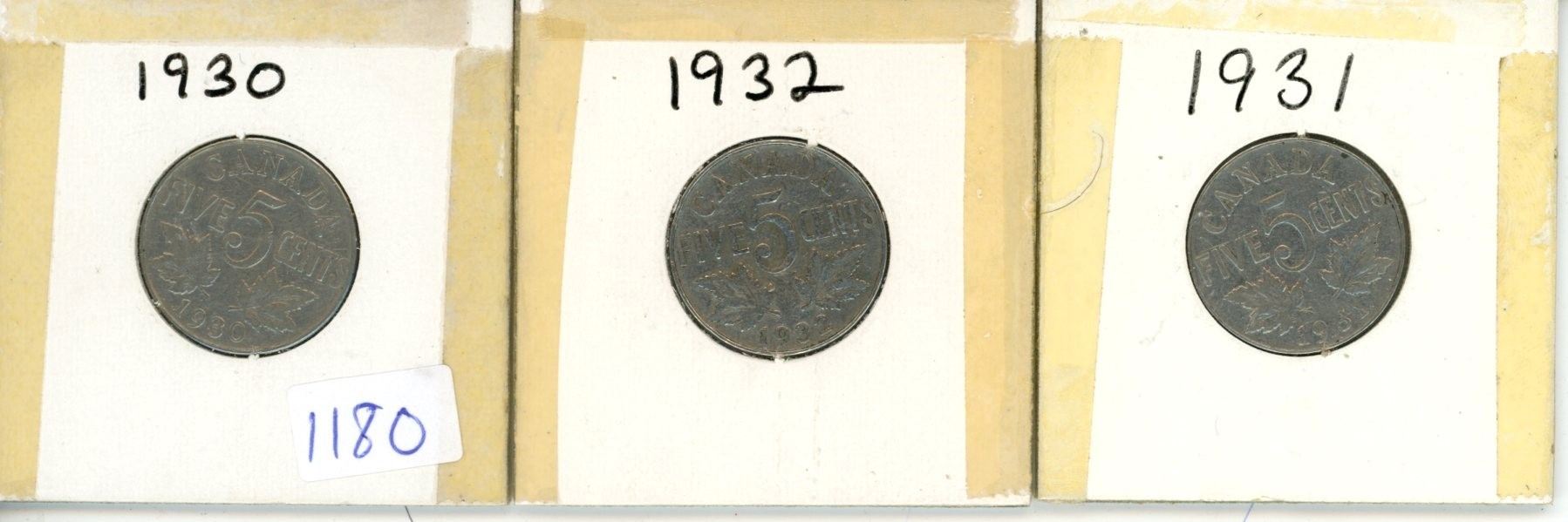 1930, 1931, 1932 Canadian 5 Cent Coin - 3 Piece