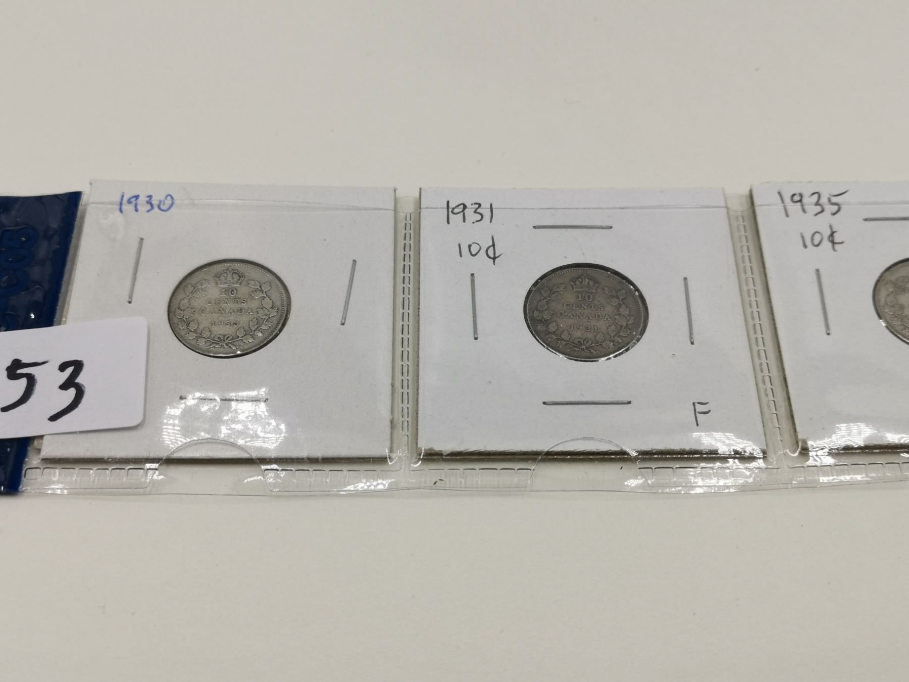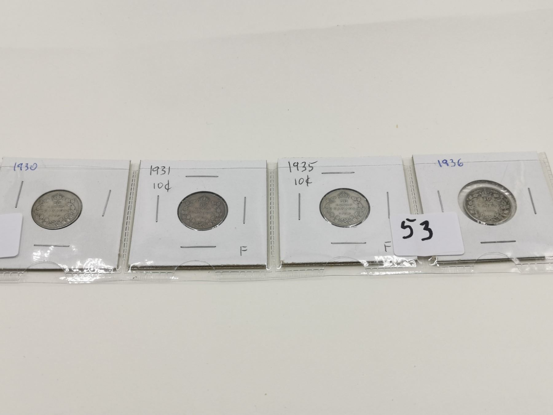 1930, 1931, 1935, 1936 Silver 10 Cent Coins