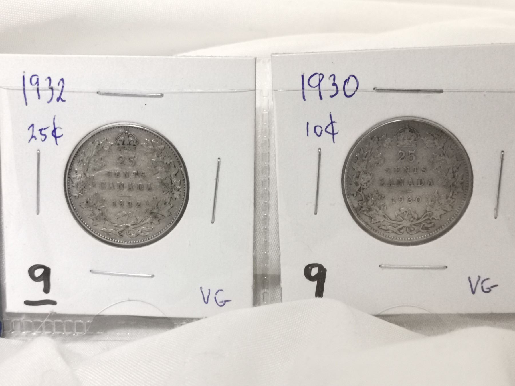 1930 & 1932 Canada Silver 25 Cent Coins