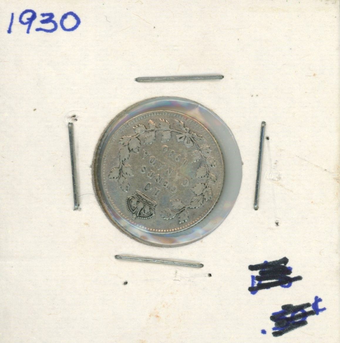1930 Canadian Silver 10 Cent Coin