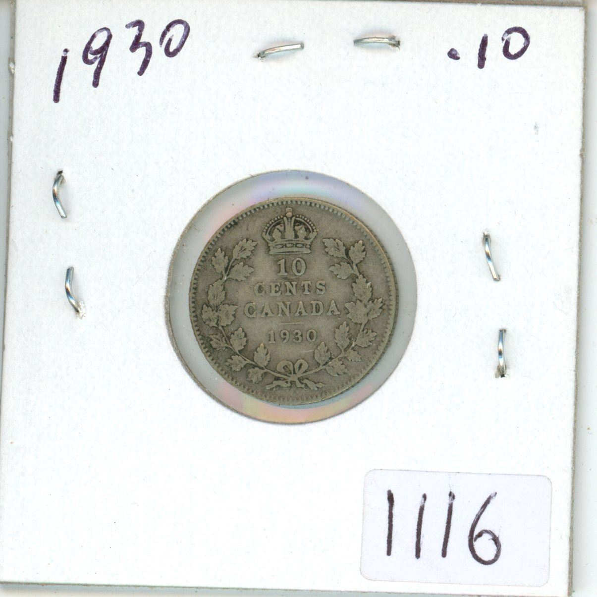 1930 Canadian silver 10 cent coin