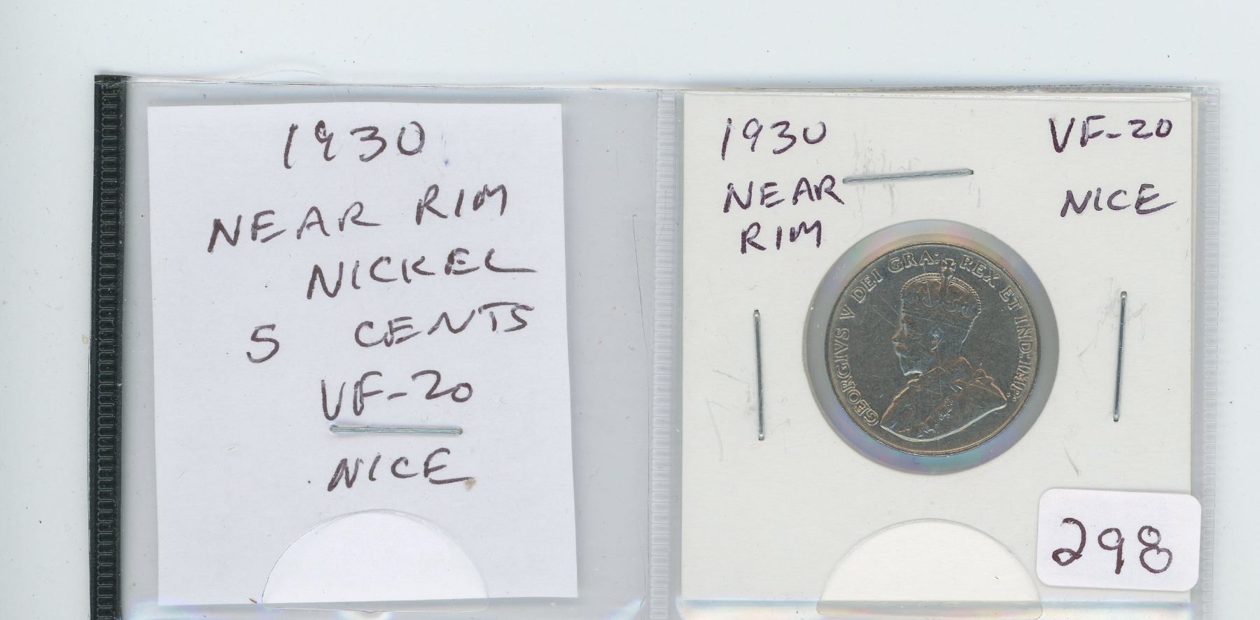 1930 NEAR RIM NICKEL 5 CENTS. VF-20. NICE.