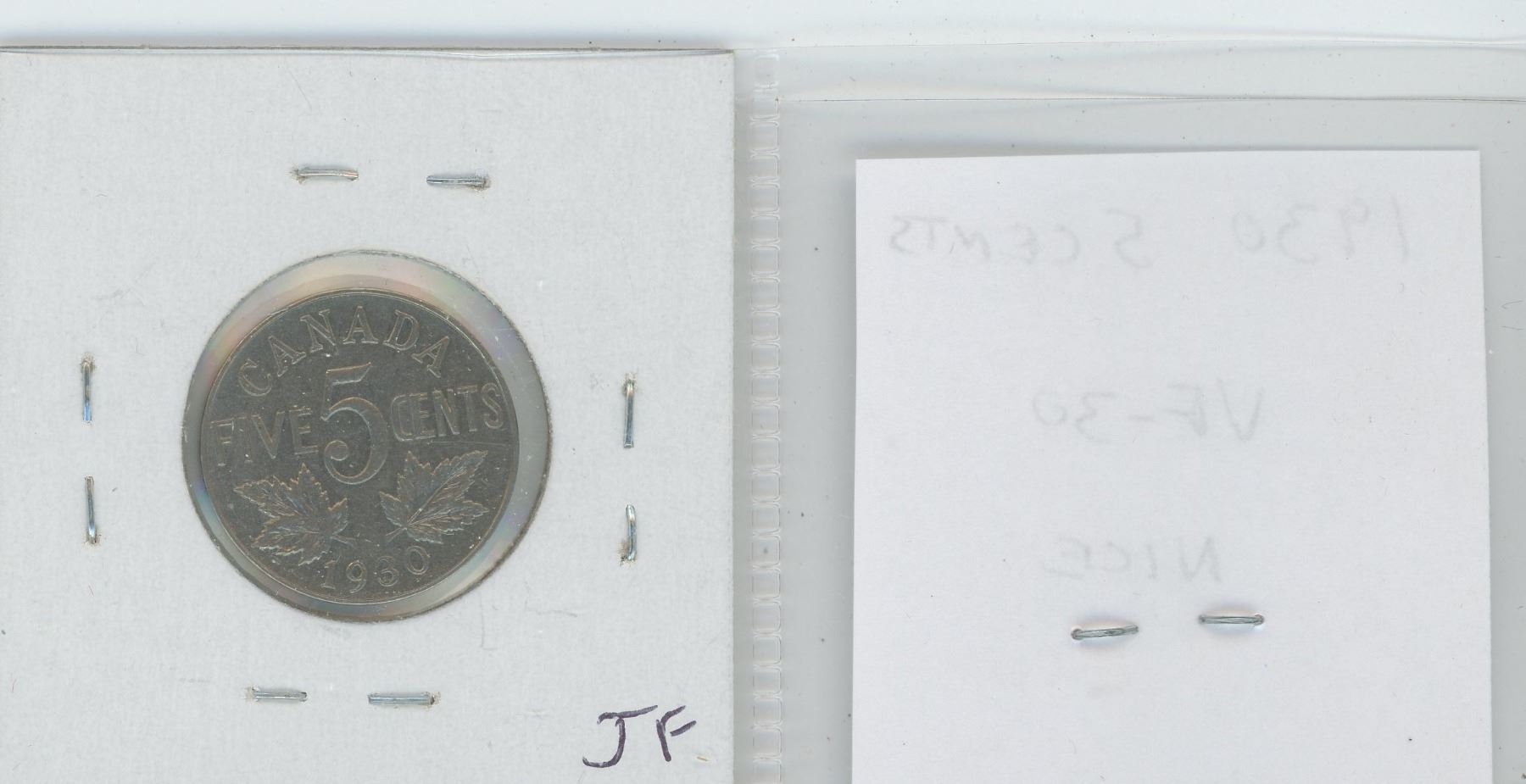 1930 NICKEL 5 CENTS. VF-30. NICE.