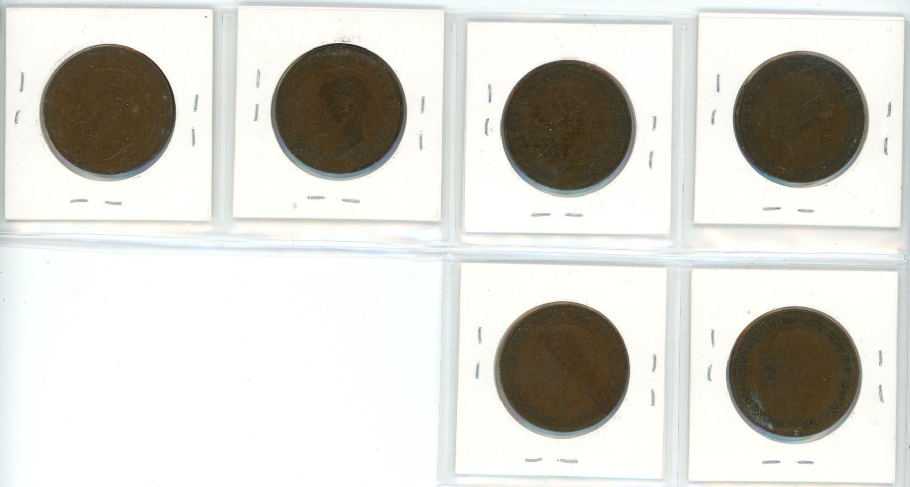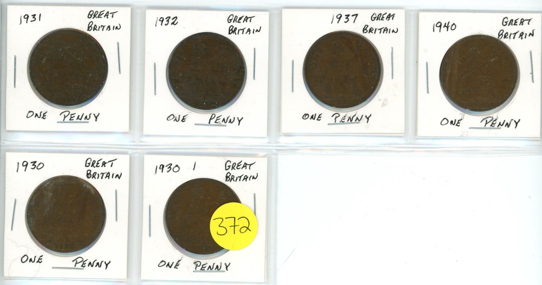 1930 X 2, 1931, 1932, 1937 & 1940 Great Britain one penny coins