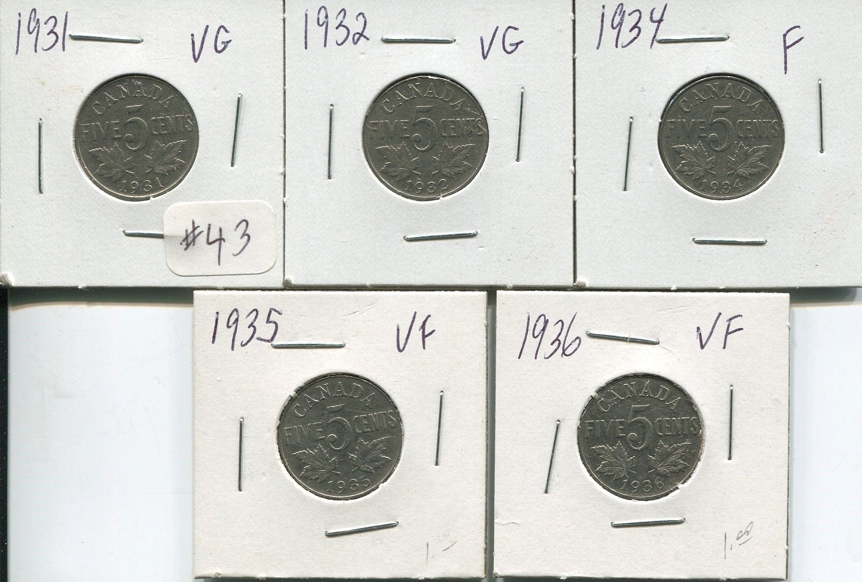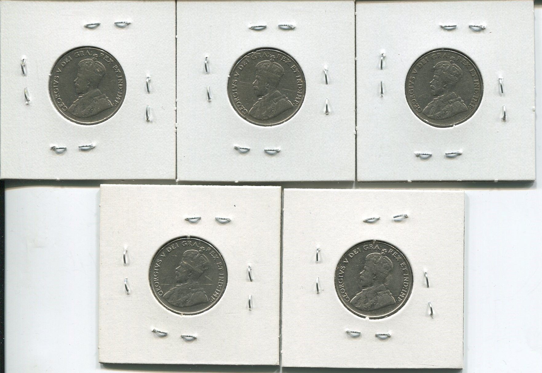 1931,32,34,35,36,5-Canadian 5 cent coins,King George V