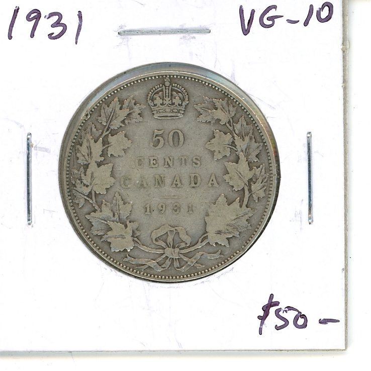 1931 Canadian Silver 25 Cents. George V. VG-10