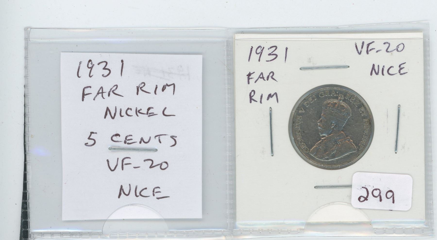 1931 FAR RIM NICKEL 5 CENTS. VF-20. NICE.