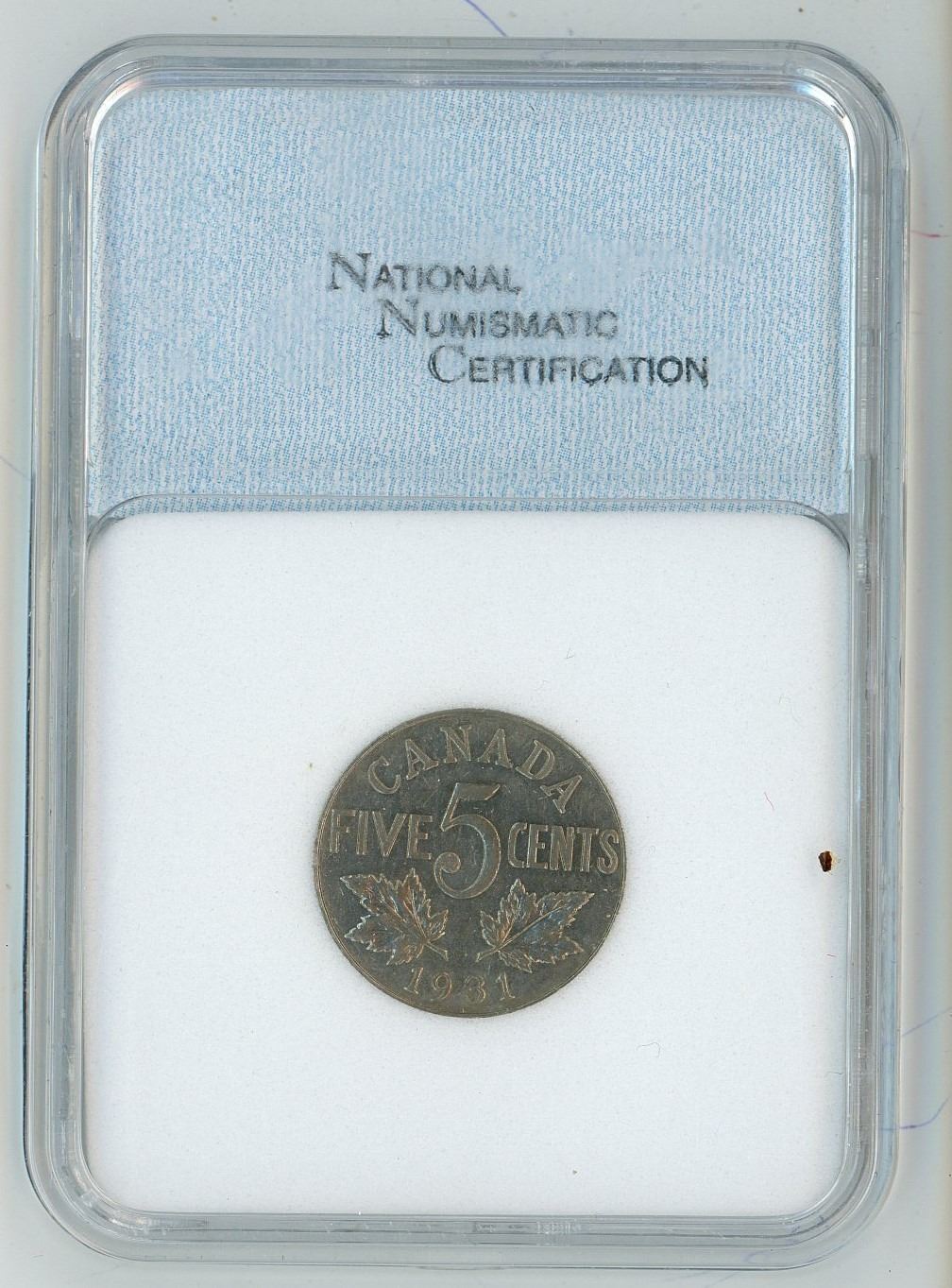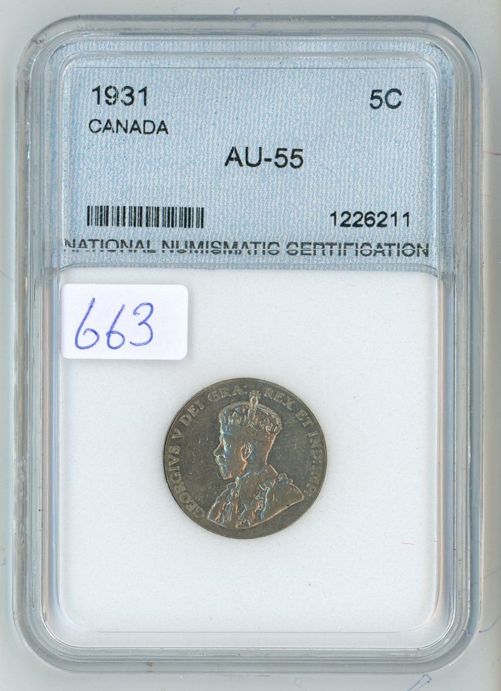 1931 NNC Graded, Canadian 5 cent coin - AU-55